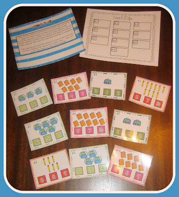 This is an adorable center for counting! I love how the colors of the borders and the squares match the colors of the pictures!!!